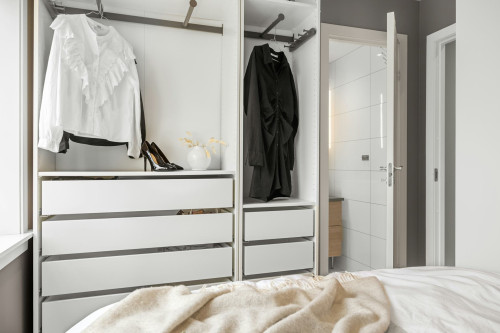 Ved at tænke i kontraster – mat mod blank, lyst mod mørkt, koldt mod varmt – kan man skabe et garderobeskab, der både fungerer praktisk og tilfører personlighed til rummet.